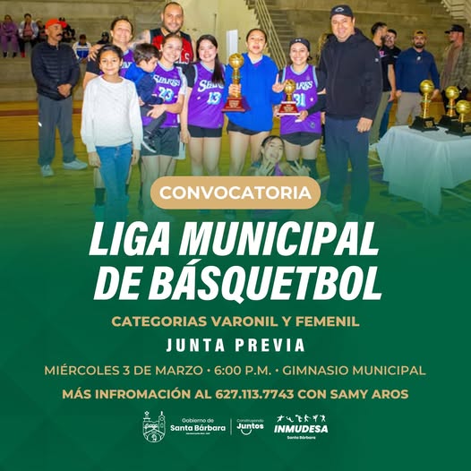 Para mayores informes sobre registros y requisitos, los interesados pueden comunicarse directamente con Samy Aros al teléfono 627.113.7743. ¡No te quedes fuera y vive la emoción del básquetbol en Santa Bárbara!”