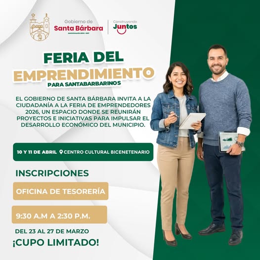 Con el firme objetivo de detonar la economía local y brindar una plataforma de exposición a los proyectos innovadores de la región, el Gobierno de Santa Bárbara anunció la realización de la Feria del Emprendimiento 2026. El evento, que se llevará a cabo los días 10 y 11 de abril en el emblemático Centro Cultural Bicentenario, busca reunir las mejores iniciativas ciudadanas en un ambiente de colaboración y crecimiento. ¿Cómo […]